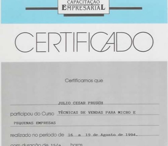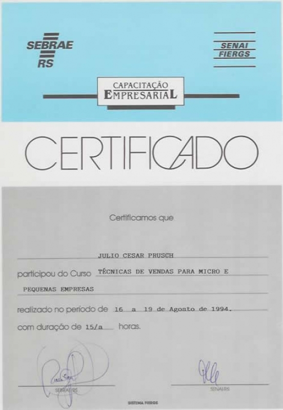 SEBRAE: Técnicas de Vendas para Micro e Pequenas Empresas – Porto Alegre/RS – 08/1994